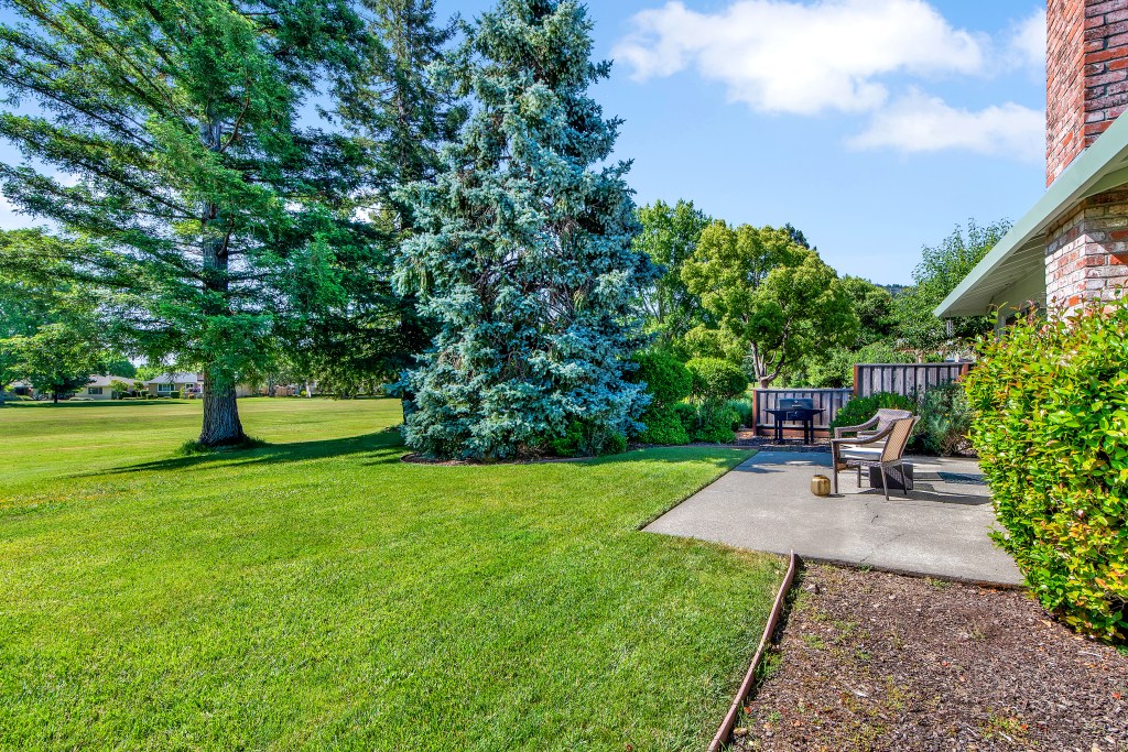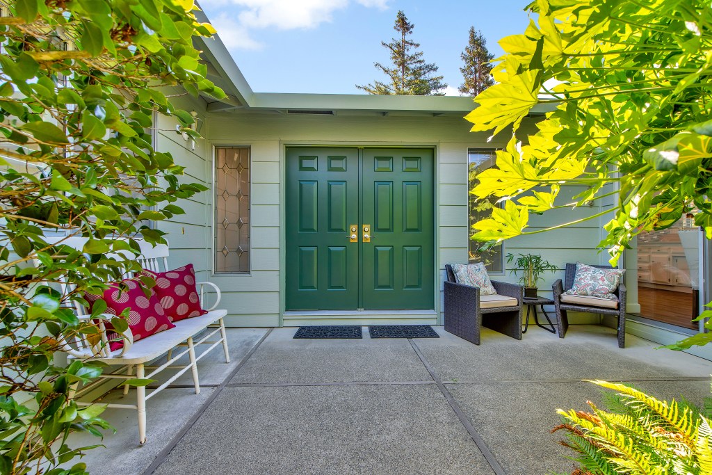 One of the standout features of the property is the lush greenery that surrounds it. The carefully curated landscape adds to the beauty of the home, creating a peaceful and serene atmosphere. The vibrant green plants and trees complement the exterior paint and contribute to the overall aesthetic of the property.