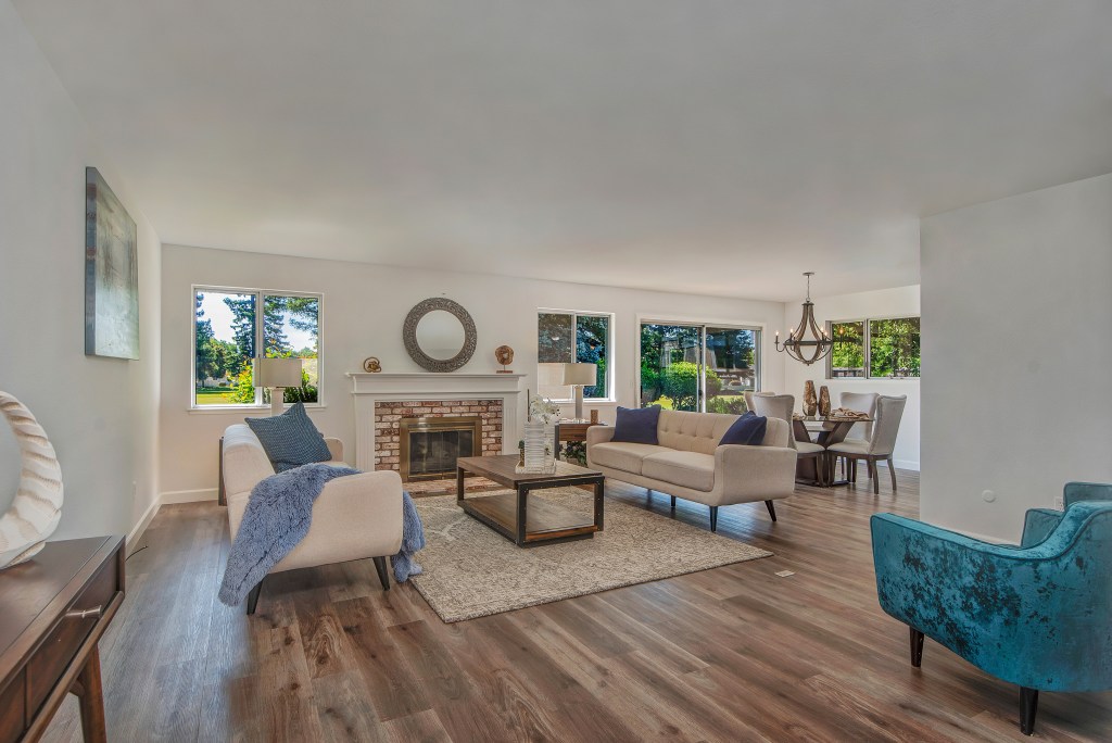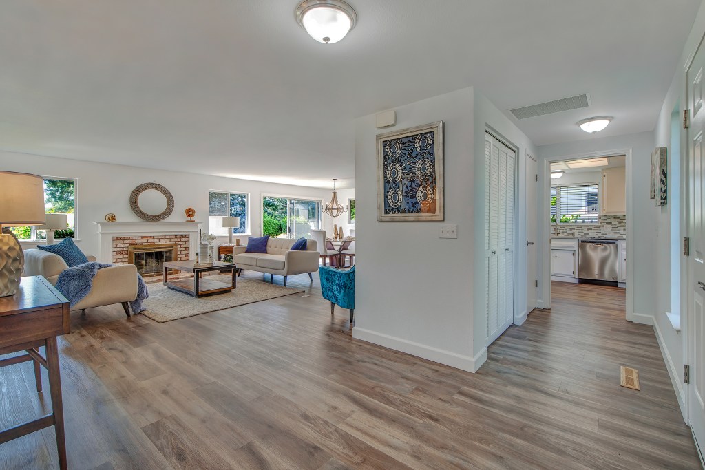 Inside the home, new hardwood flooring has been installed, adding a touch of sophistication and luxury. The rich and natural tones of the hardwood create a warm and inviting ambiance throughout the living spaces. The new flooring not only enhances the visual appeal of the home but also provides durability and easy maintenance.