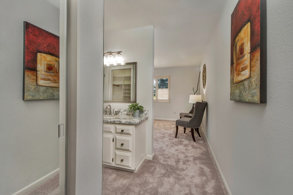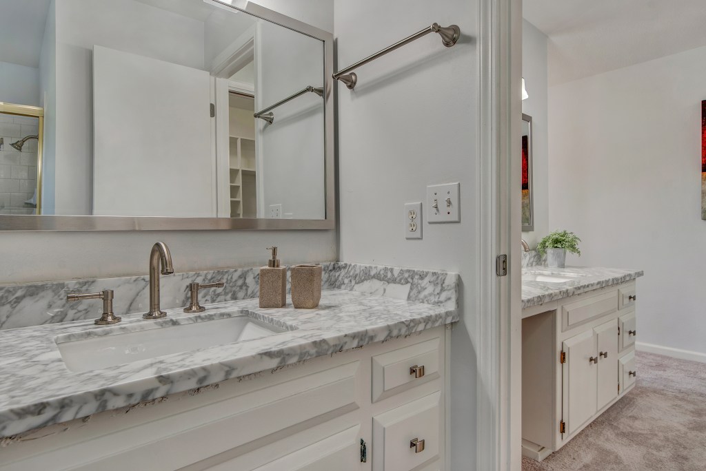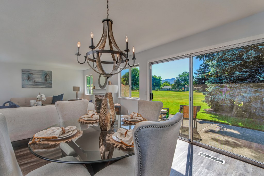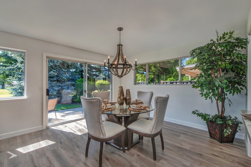 The Mountain Vista home is a stunning property that has been transformed into a bright and elegant living space. The delicate eggshell paint used on the exterior of the house has elevated its appearance, giving it a fresh and inviting look. The choice of this paint color has brought brightness to the home, enhancing its overall appeal.
